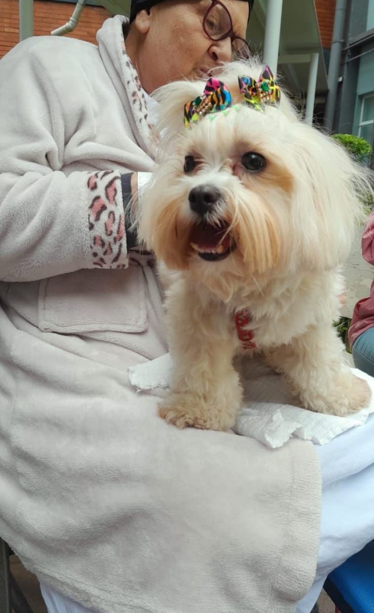 Cachorrinha que ajudou tutora a vencer doença agora leva amor a outras pacientes: 'Ela sabe o que fazer'