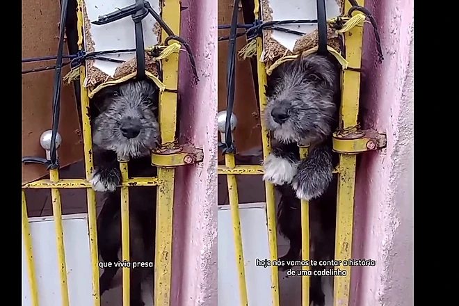 A situação anterior de Alice não era apenas de abandono nas ruas. Era de confinamento e privação extrema de contato. De acordo com a protetora Adriana Silva a cadela foi encontrada presa dentro de um cômodo.
