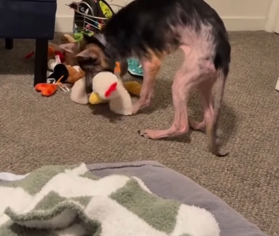 Tutora é alertada que seu cão talvez nunca mais tivesse pelos, mas após meses de amor ele fica irreconhecível
