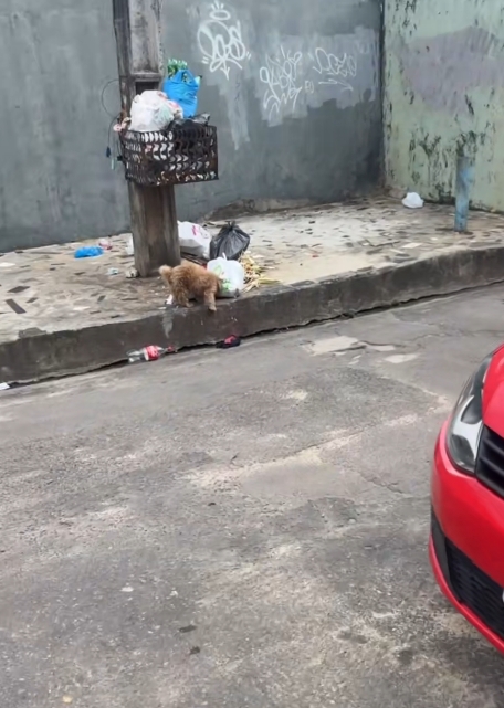 'Tão pequenininho': Moça toma atitude após encontrar cão solto comendo lixo e 'dona' aparecer em seguida