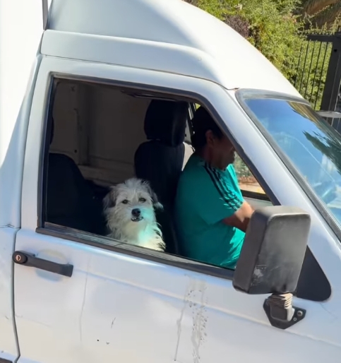 Durante uma faxina pesada, Samira percebeu que seria impossível trabalhar com o cão solto: