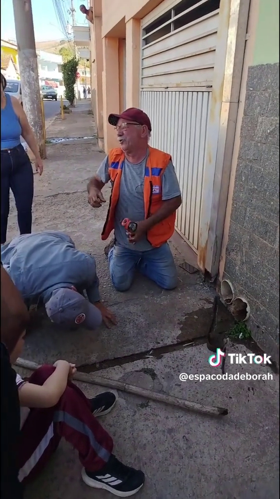 Deitado no concreto da calçada, um homem de uniforme cinza mantinha seu braço inteiro mergulhado na escuridão de um cano de drenagem. Ao seu lado, um senhor de colete laranja se ajoelhava.