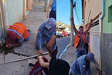 A internauta Debora autora do vídeo, registrou os homens trabalhando sem parar. O bombeiro estava totalmente focado na tarefa, ele fez tudo que estava ao seu alcance para tentar ganhar mais alguns centímetros e puxar o cão.