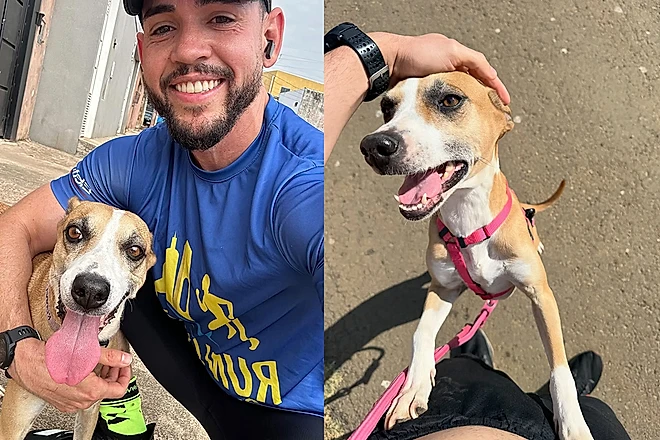 A corredora de quatro patas Runna uma vira-lata caramelo conquistou o coração do atleta Adailton Roger após acompanhá-lo por quase toda uma corrida de 27 quilômetros e mudar para sempre a rotina de treinos dele.