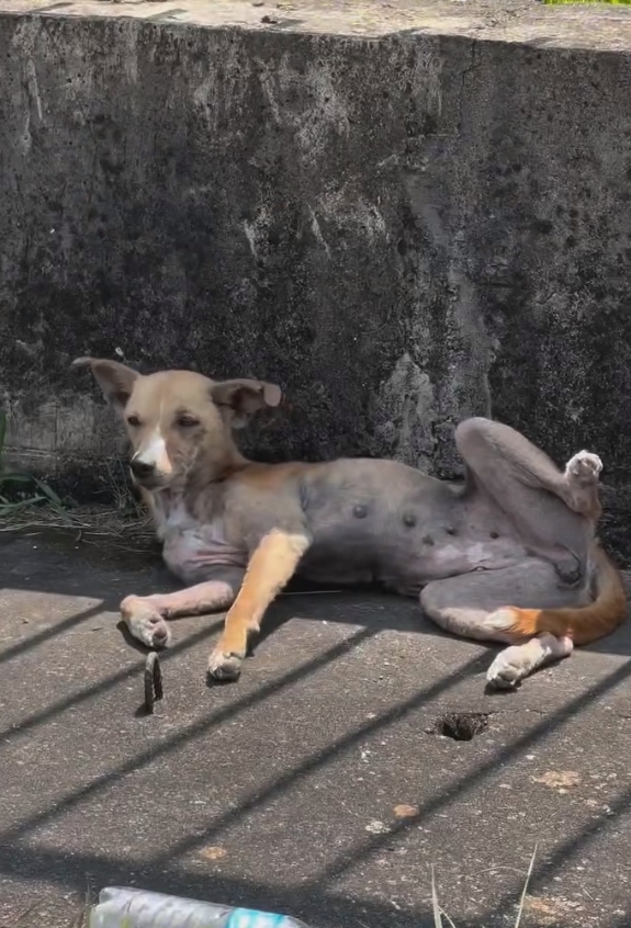 Sol estava cheia de feridas, com o corpinho coberto por sarna e tão fraca que mal levantava a cabeça.