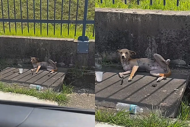 O vídeo do resgate, publicado em 14 de outubro, Sheila estaciona o carro ao lado da cachorrinha, que está deitada, exausta, sem qualquer reação. E então chama por ela:
