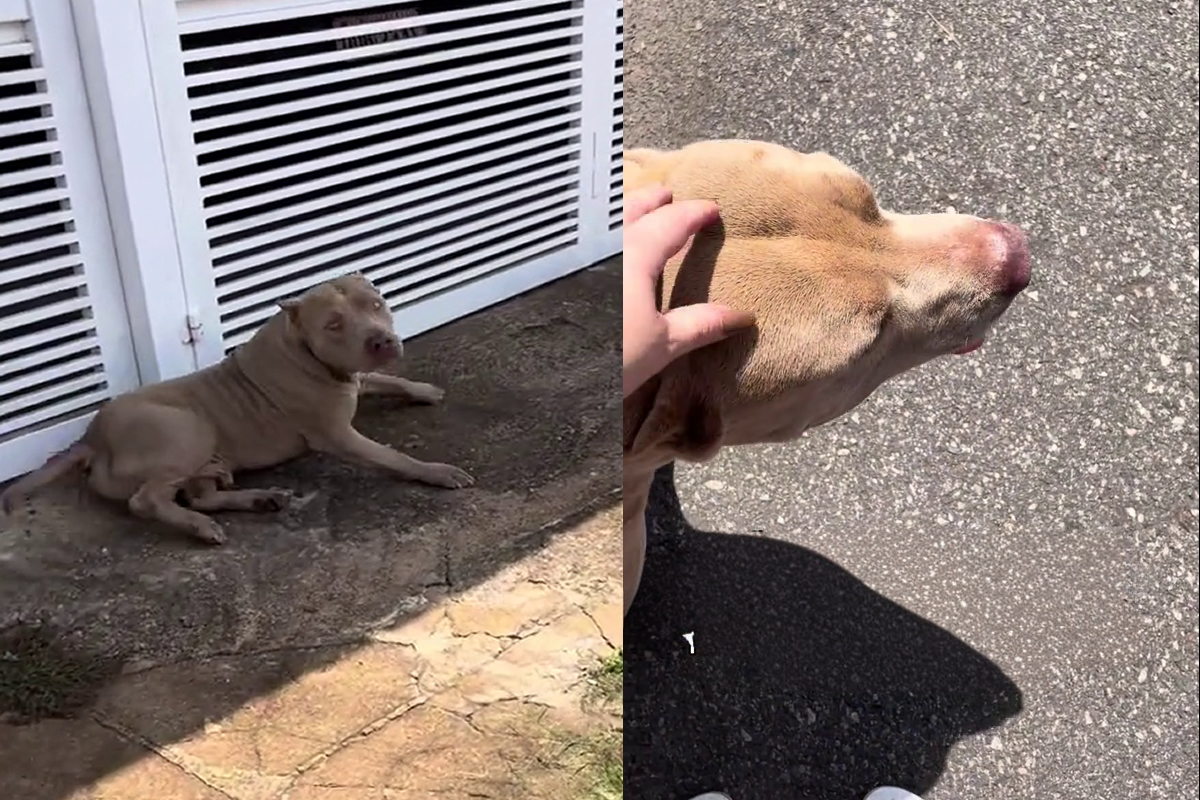 E ela não parou por aí. Depois de alguns minutos ao lado dele, tomou a decisão que mudaria o destino do animal: resgatou o pitbull, levando-o para casa, longe do sol escaldante e iniciando uma nova história.