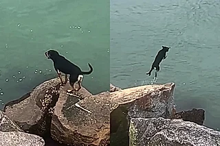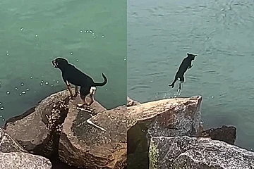 Ela relatou ainda que ele se joga mar adentro atrás dos jets ski e riu da audácia do cão.