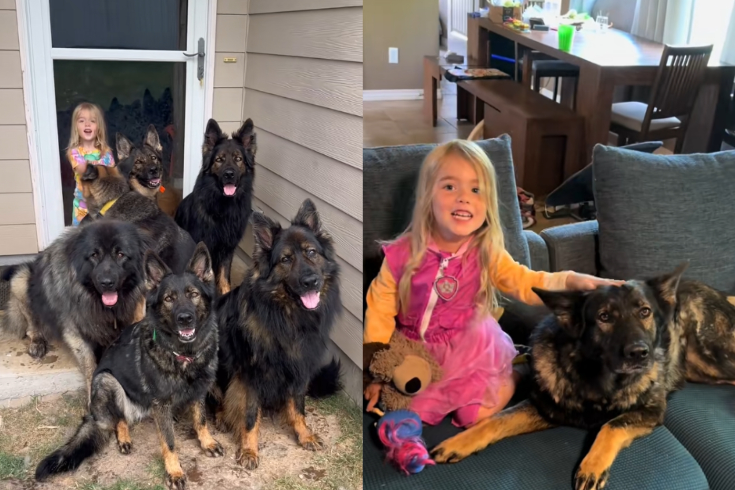 Em 2023, uma garotinha chamada River viralizou após a mãe, Ashley Shell, mostrar as "consequências" dela ter crescido com cinco cães da raça pastor alemão.