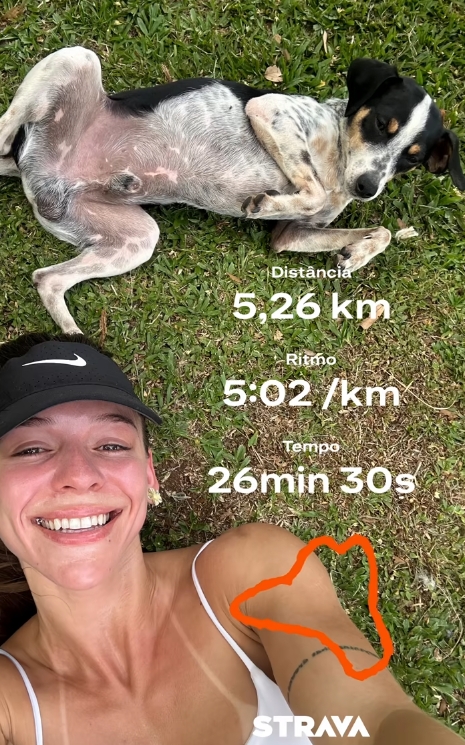 “Era para ser um domingo de manhã com corrida normal até que encontramos esse doguinho perdido. Ele foi atrás de nós”, diz o texto do vídeo que ela registrou e publicou no TikTok.