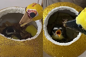 Após tempestade, homem encontra filhote de pássaro indefeso e tem ideia genial para assumir o papel de mãe