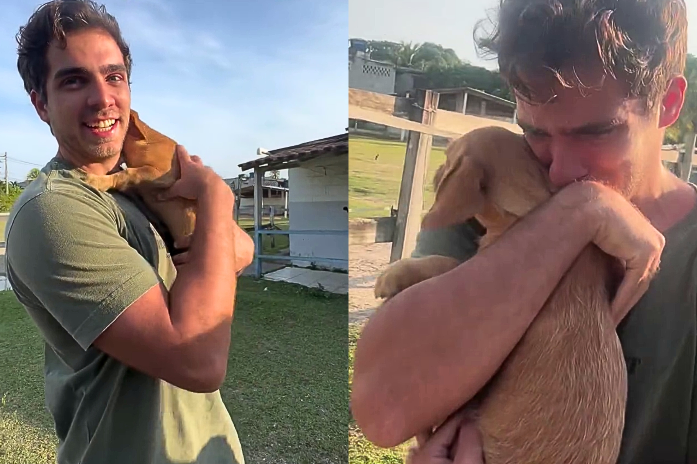 "Tô te conhecendo hoje e já te amo": Ator cai no choro ao realizar sonho de infância e conexão com pet comove fãs