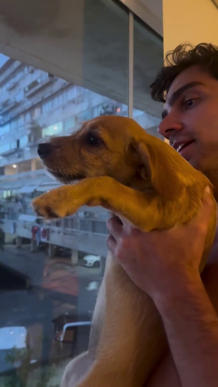 Ao lado da namorada Adrinne Moraes, ele viveu um dos dias mais marcantes de sua vida pessoal ao concretizar a adoção de uma filhote vira-lata caramelo.