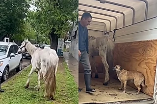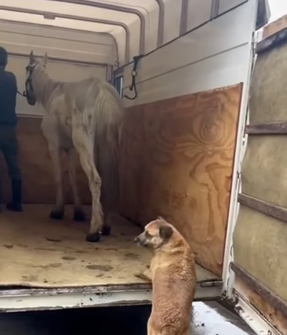 'Amiga leal': Equipe chega para resgatar égua em situação triste mas cachorrinha vira-lata não a deixa ir sozinha