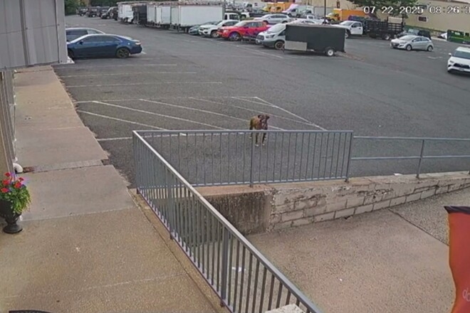 Os funcionários já estavam fechando quando viram o cão parado no estacionamento, olhando para dentro.