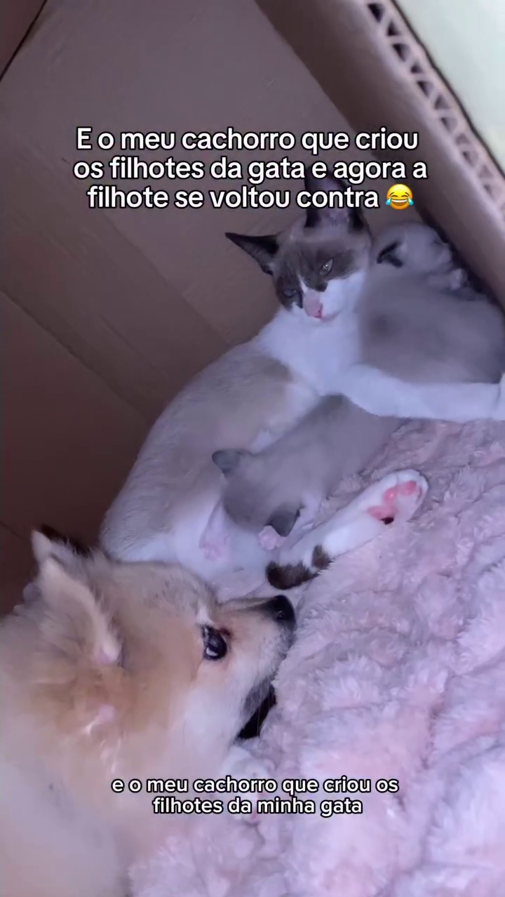 A rotina de um spitz dedicado à criação de filhotes de gatos tomou um rumo inesperado quando os filhotes de uma gatinha se viraram contra ele.