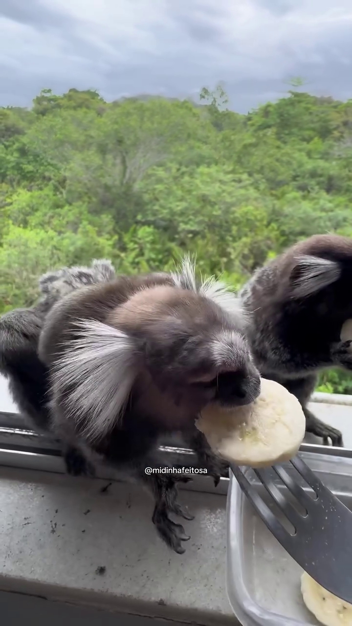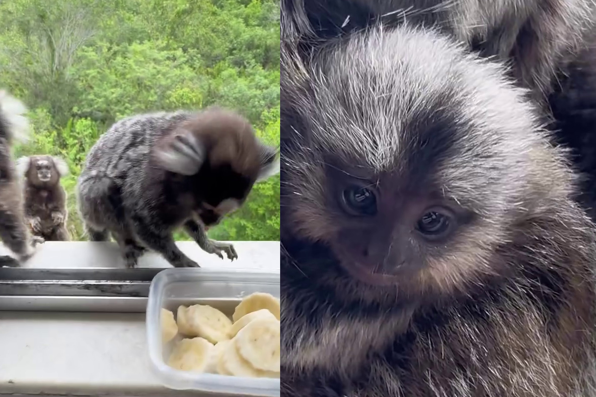 A criadora de conteúdo conhecida como @midinhafeitosa compartilhou com seus seguidores a rotina de alimentar uma família de saguis que frequenta a área externa de sua casa.