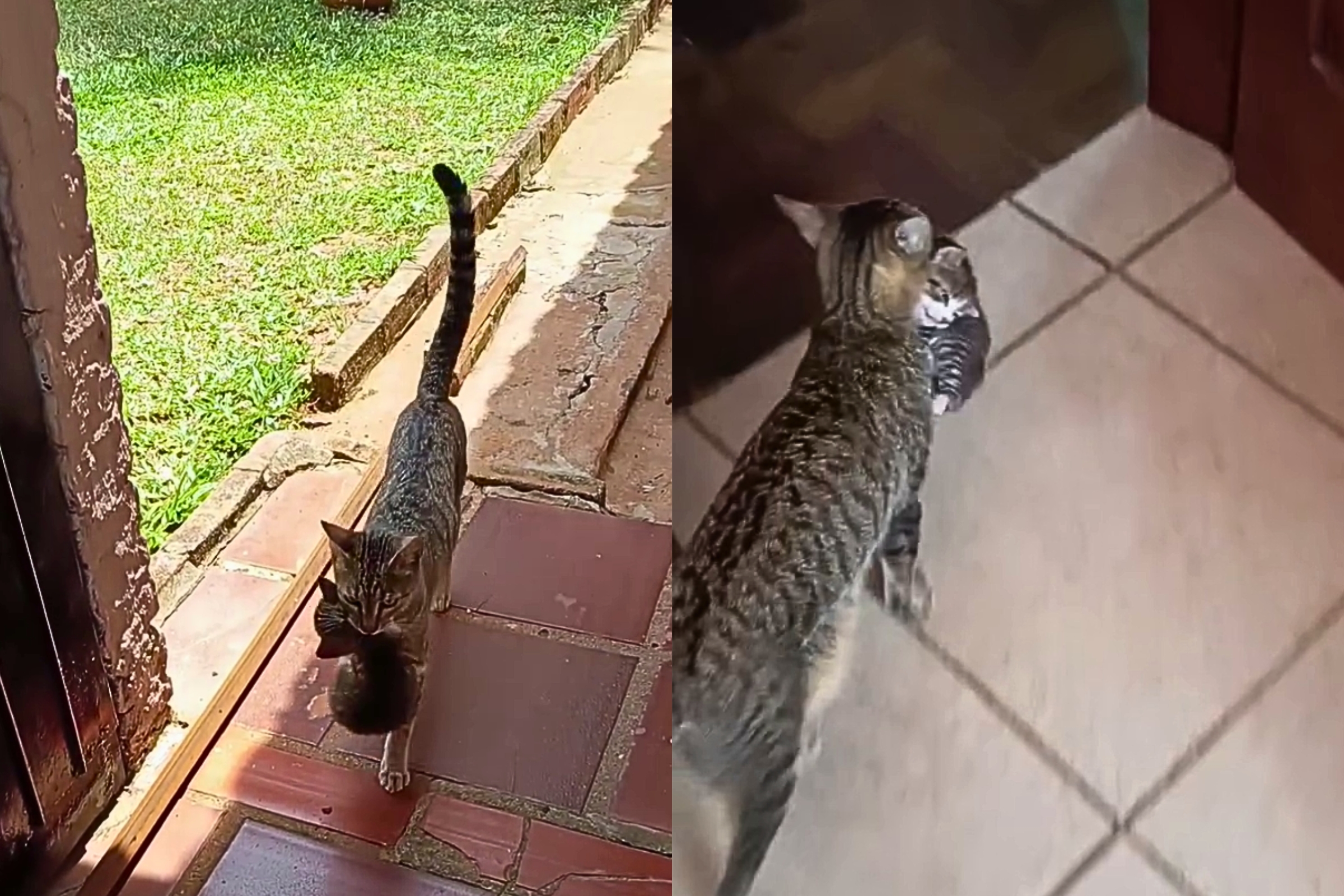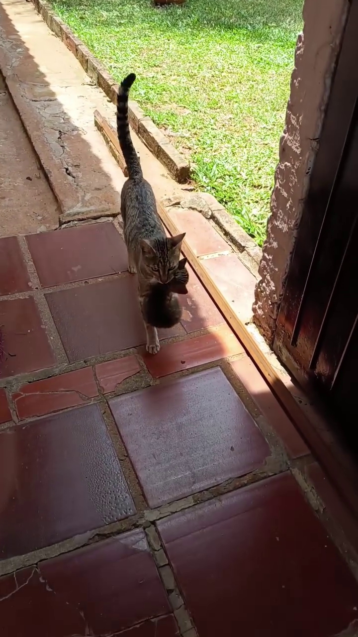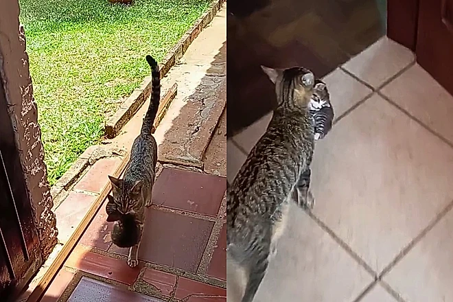 No dia 30 de novembro, a felina decidiu atravessar muros e percorrer o pátio da vizinhança para levar, um a um, seus três filhotes até a família, em Cachoeira do Sul.
