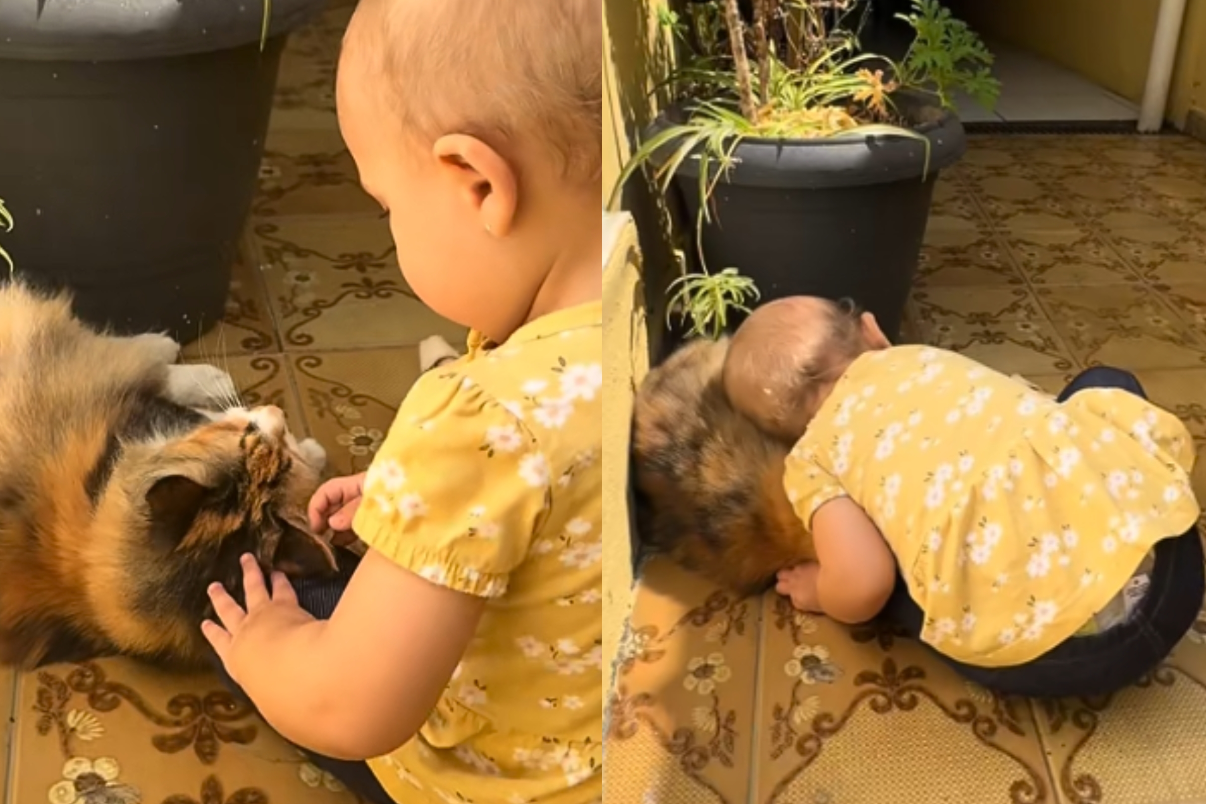 Menininha de dois anos vive momento de “amor à primeira vista” com a gatinha da bisavó e vídeo conquista a internet