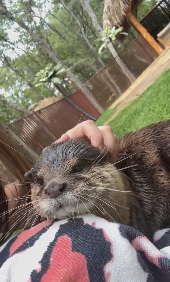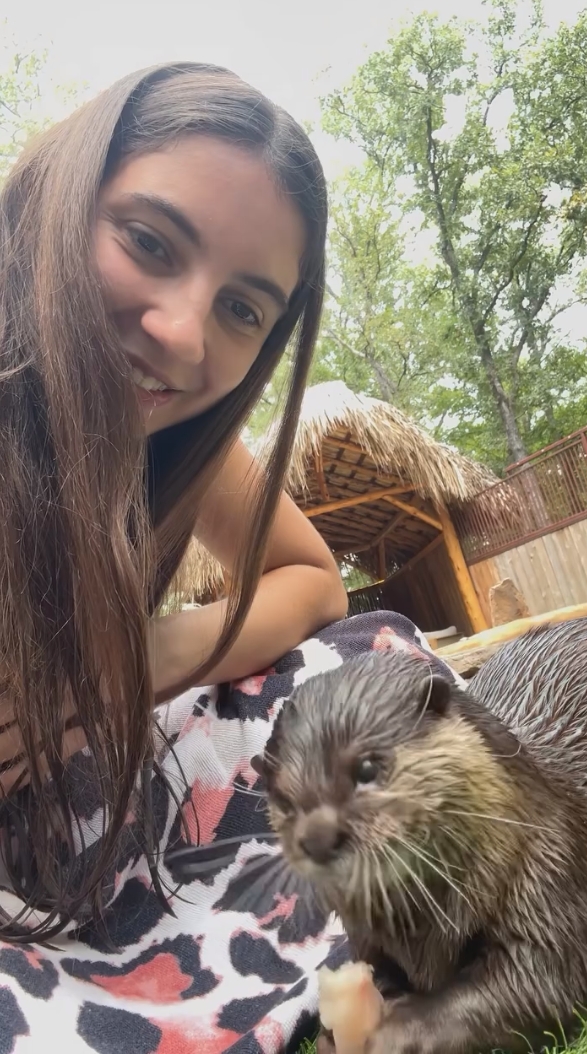 Ela sabia que encontraria alguns animais por lá, mas não fazia ideia de que viveria uma das experiências mais divertidas, fofas e memoráveis da vida: nadar com lontrinhas.