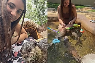 “Tinha três lontrinhas e eles deram bastante brinquedos pra gente, pedrinhas de gelo, várias coisas que elas estavam amando brincar. E é sério, gente, era a coisa mais engraçada do mundo”, explicou.