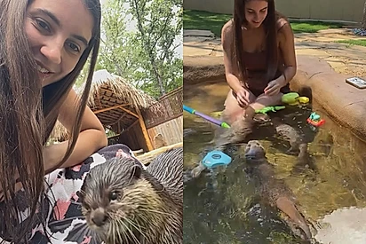 Entre uma travessura e outra, as lontras viravam de barriga para cima, pedindo carinho, e faziam aquele barulhinho característico que conquistou completamente Maressa.