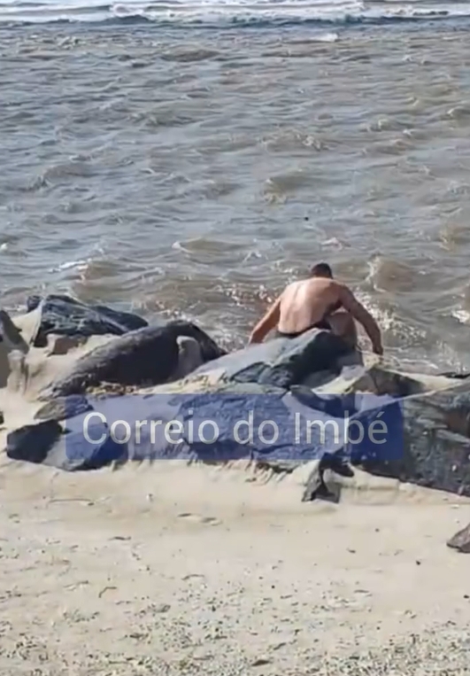 Quando o homem percebeu, estacionou imediatamente para retirar o animal, que se assustou, correu em direção às pedras próximas ao mar e, em poucos segundos, acabou escorregando.