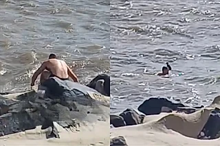 “Ainda existem heróis”: Momento de tensão acontece no RS após guarda-vidas pular em mar agitado para ajudar filhote