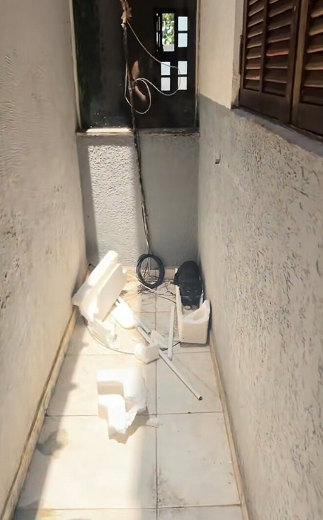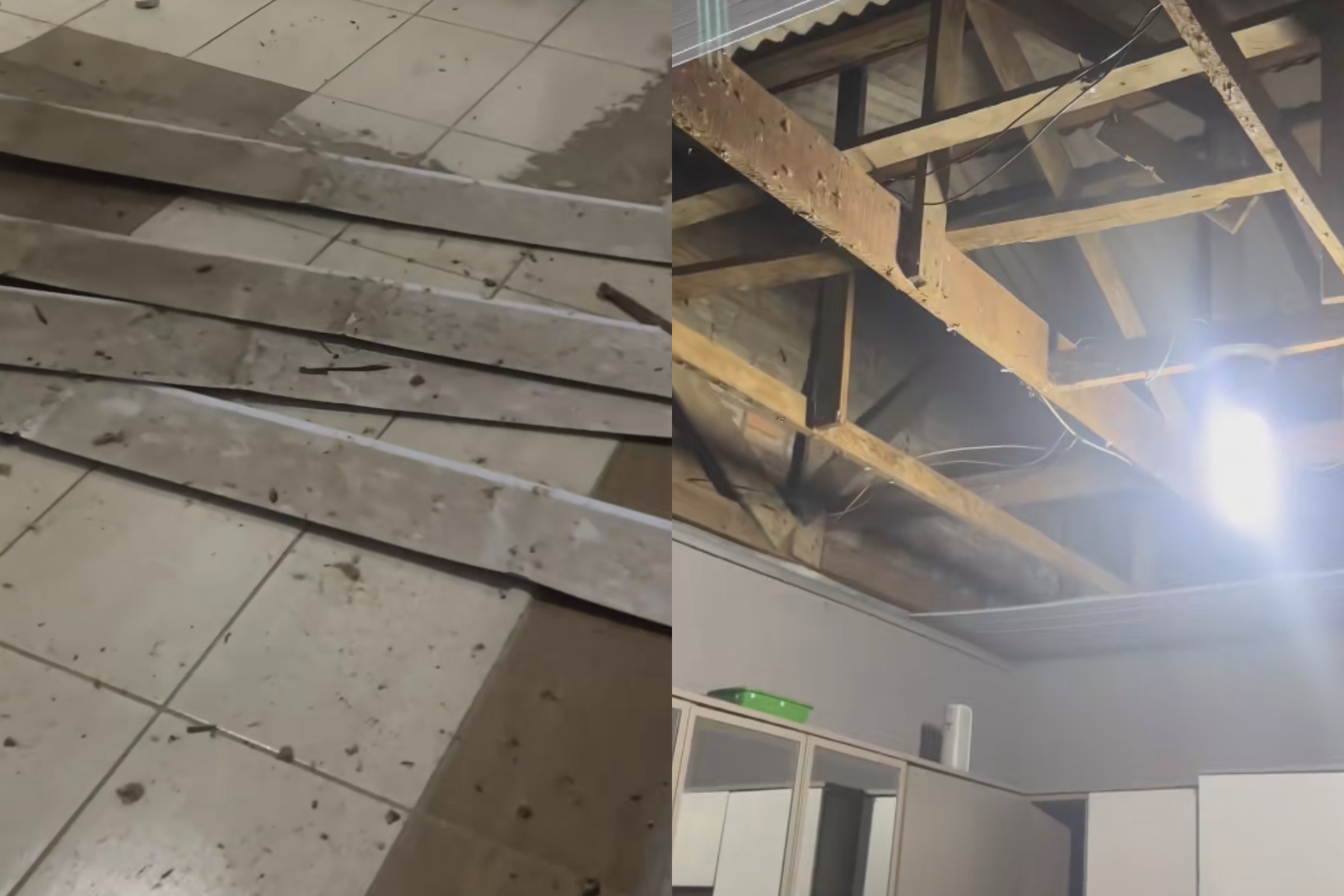 O forro da cozinha simplesmente estava no chão. Mas quando ela foi analisar o estrago, percebeu que a história era ainda maior.