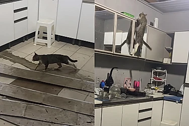 Encontrar bagunça de gato pela casa não é novidade para quem convive com felinos. Mas o que Vitorya Gheller encontrou, no meio da noite, superou qualquer expectativa.