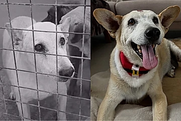 "Demorou 12 anos, mas valeu cada segundo": Cão que passou a vida inteira atrás das grades descobre o que é ser amado
