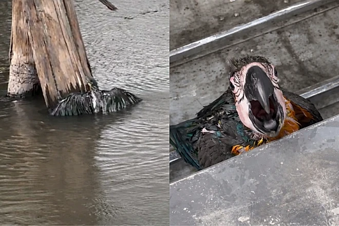 “Ai, que dó”: filhote de arara cai do ninho e pescadora faz resgate emocionante no rio