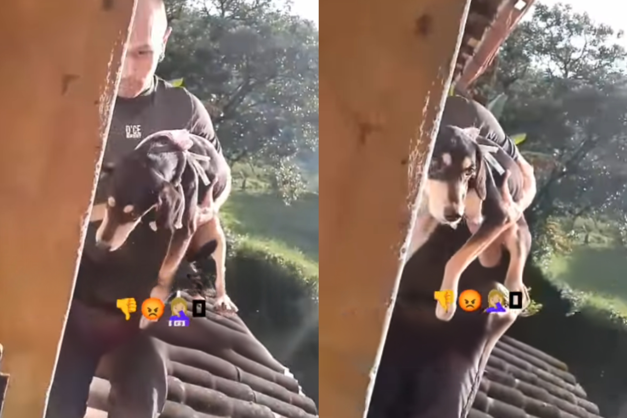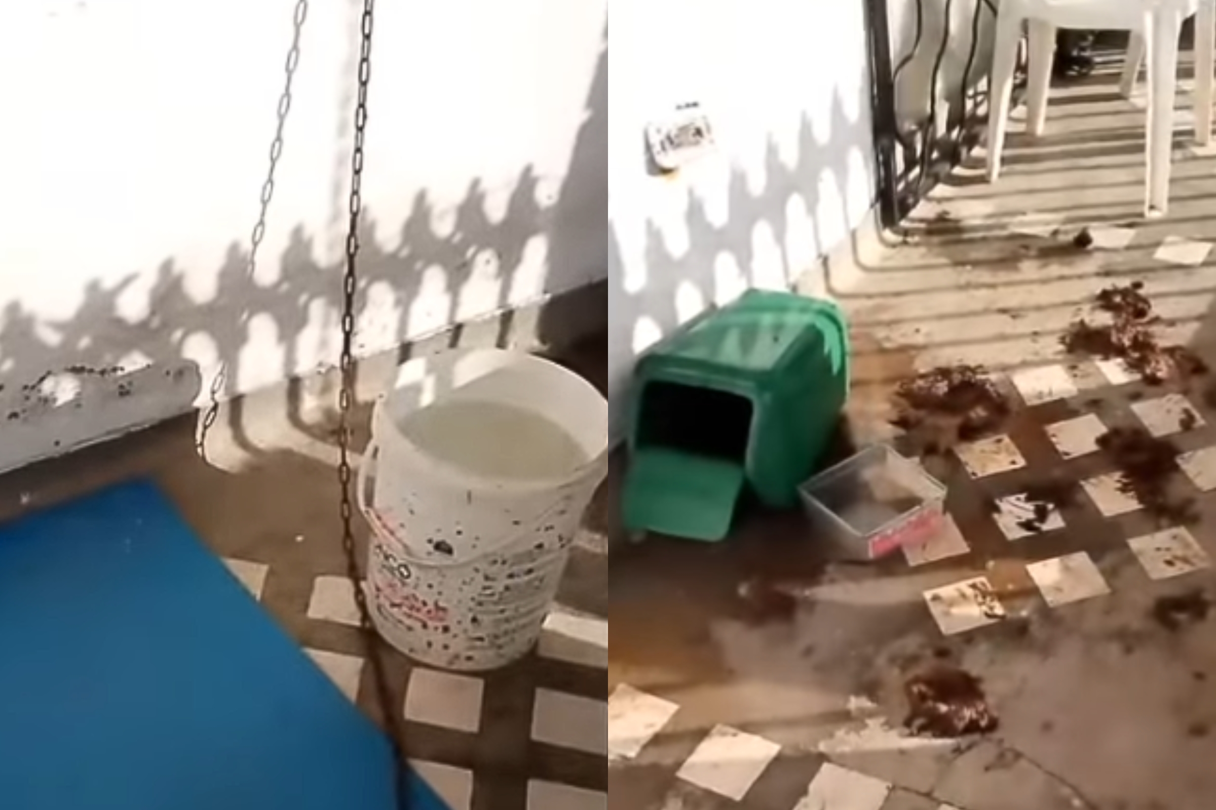 “Olá, neste momento quero registrar as condições em que tinham a nossa cachorrinha que supostamente adotaram. Olhem que porcaria”, diz um dos integrantes da ONG. “Deixaram sem comida, um monte enorme de sujeira, água, imundície e a deixaram amarrada. Nessas condições não se deixa uma cachorrinha.”