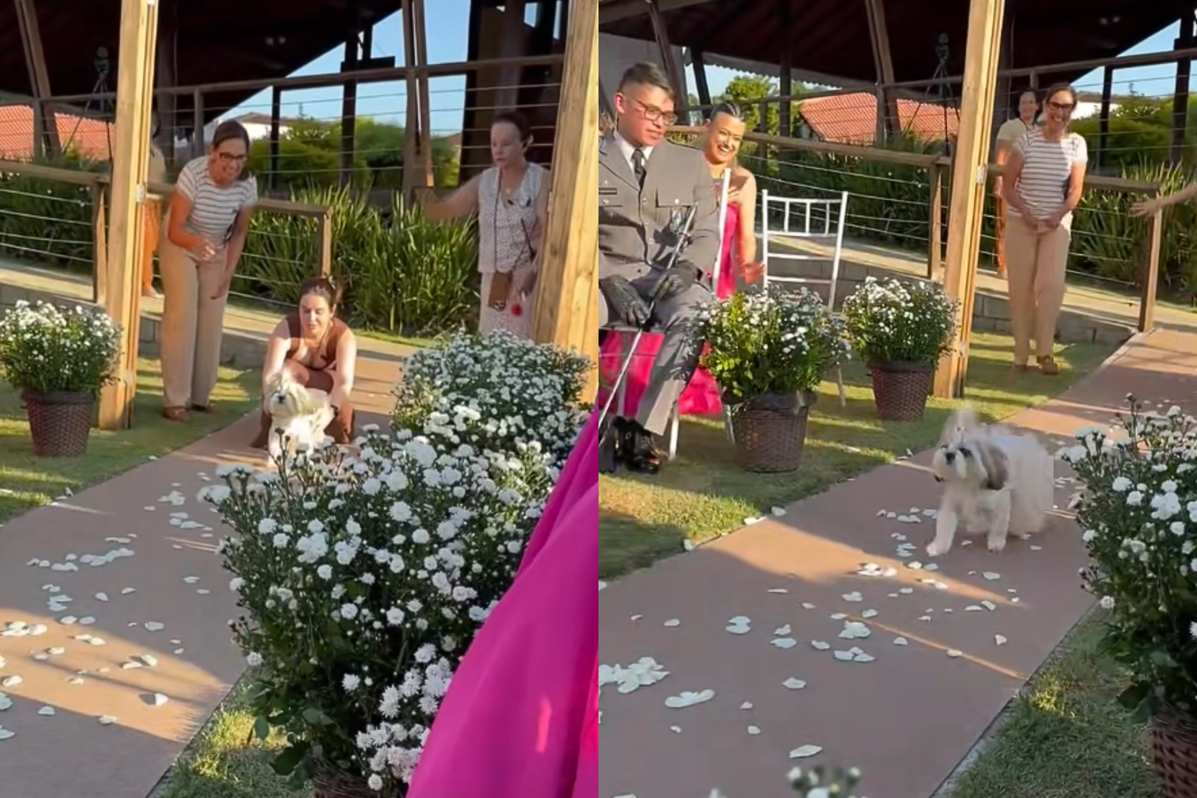"Ela parou para tirar foto, foi isso mesmo?": Shih Tzu dama de honra fica famosa por fazer entrada perfeita em casamento