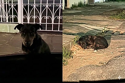 O cachorro não apenas permaneceu no local como também se sentia seguro o suficiente para dormir profundamente no pé do portão.