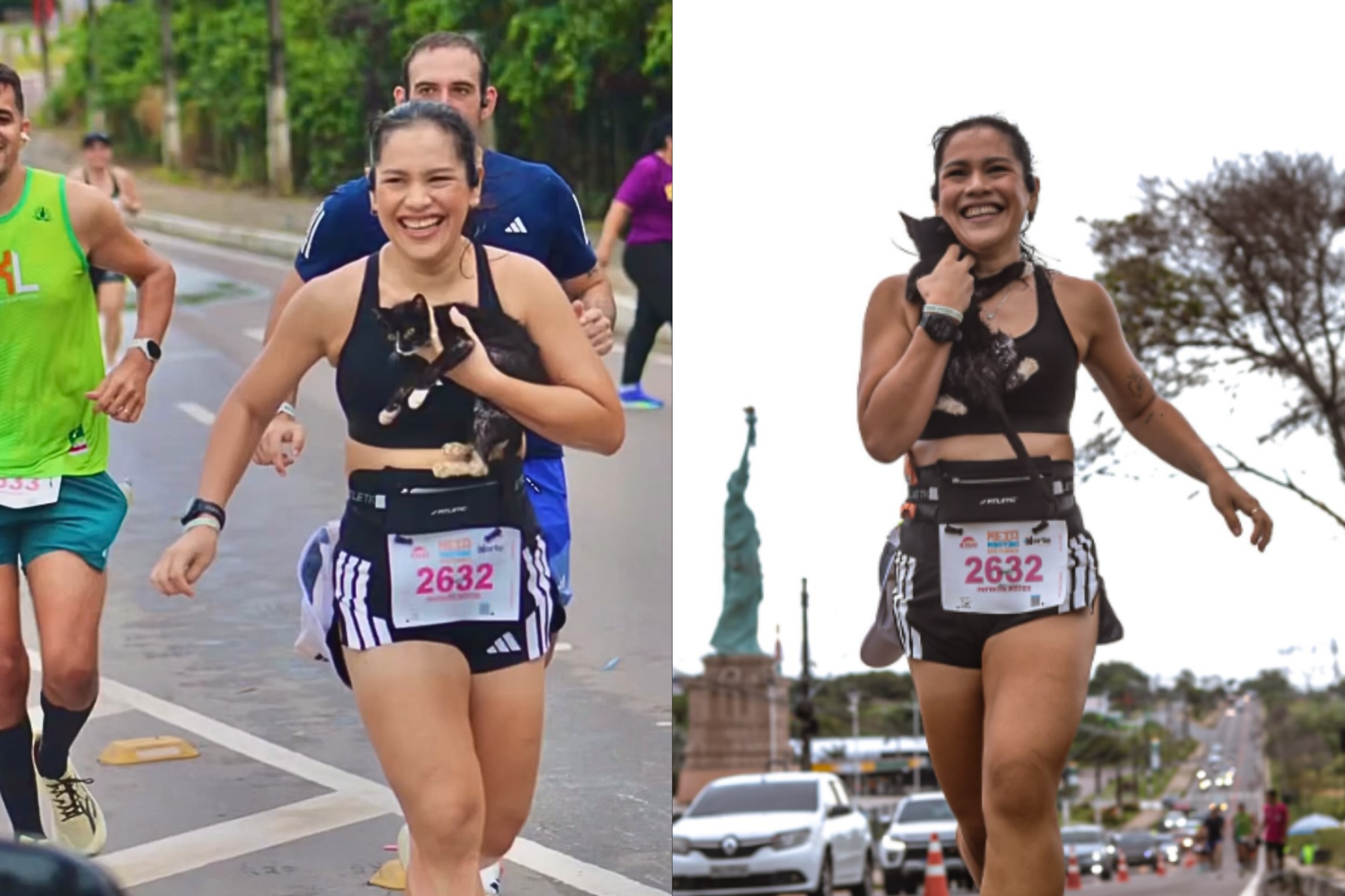 “Ganhou o troféu mais valioso”: Em meio à prova, corredora resgata gatinho abandonado e corre 8 km com ele no colo