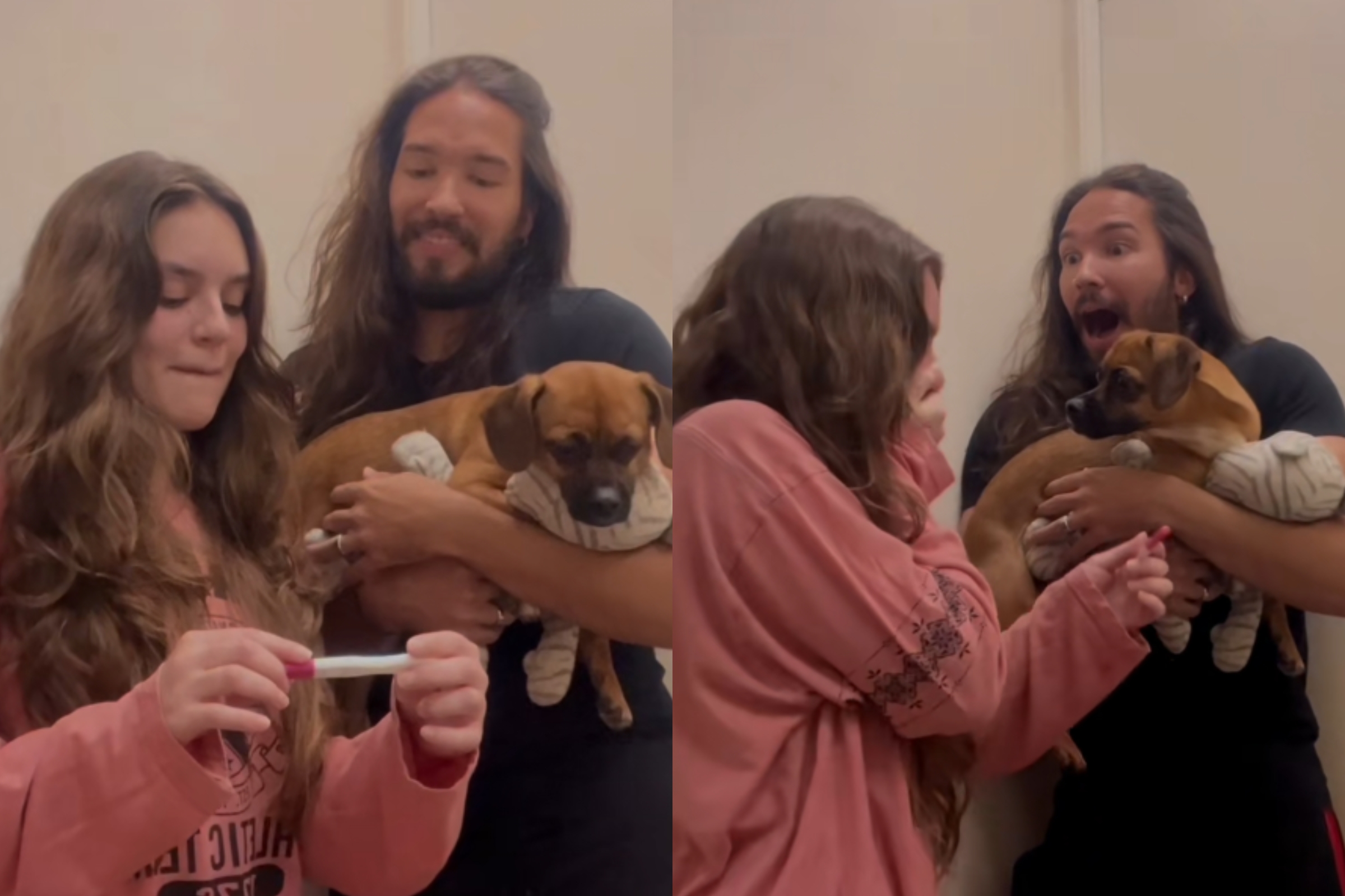 Desde o momento em que JotaPe e Lina viram o positivo no teste de gravidez, Alfredo, o cachorro, percebeu que algo estava diferente dentro de casa.