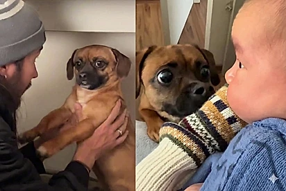 "Ele vai ser teu amigo, tá bom?": Cão que “não entendia” gravidez da tutora tem a melhor reação ao conhecer bebezinho