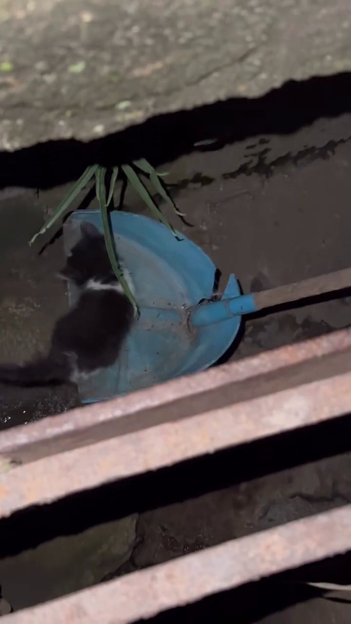 A estratégia inicial de usar uma pá foi adaptada quando perceberam a fragilidade do felino. Com o auxílio de uma vassoura, eles conseguiram posicionar o animal sobre a pá e puxá-lo para a superfície em segurança.