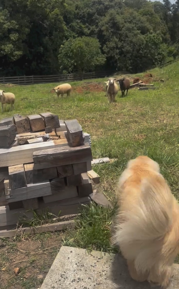 Curioso como todo bom golden retriever, Romeu avistou cinco ovelhas e decidiu se aproximar para investigar.