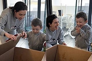 Diante da cena, Alessandra peguntou ao menino: “O que será que tem dentro dessa caixa, filho?”. Em seguida, incentivou o garotinho a abri-la, respeitando o tempo e a emoção daquele momento tão especial.