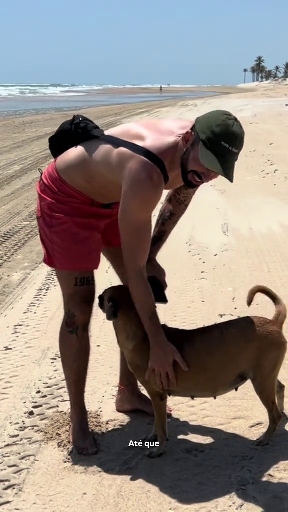 Ela passou a seguir o profissional pela areia, o que motivou a decisão de levá-la para casa. O plano inicial era simples: oferecer abrigo, aguardar o nascimento dos supostos filhotes, realizar a doação dos animais e castrar a fêmea.