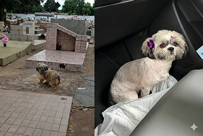 Os funcionários contaram que, cerca de dez meses antes, a cachorrinha apareceu acompanhando um enterro, caminhando ao lado da família durante a despedida. Desde então, ela permaneceu no local, dia após dia, como se estivesse esperando alguém voltar.