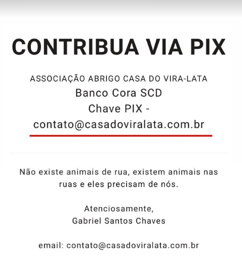 Na publicação, ele também deixou o contato do projeto — contato@casadoviralata.com.br — reforçando que resgatar vidas só é possível com apoio coletivo.