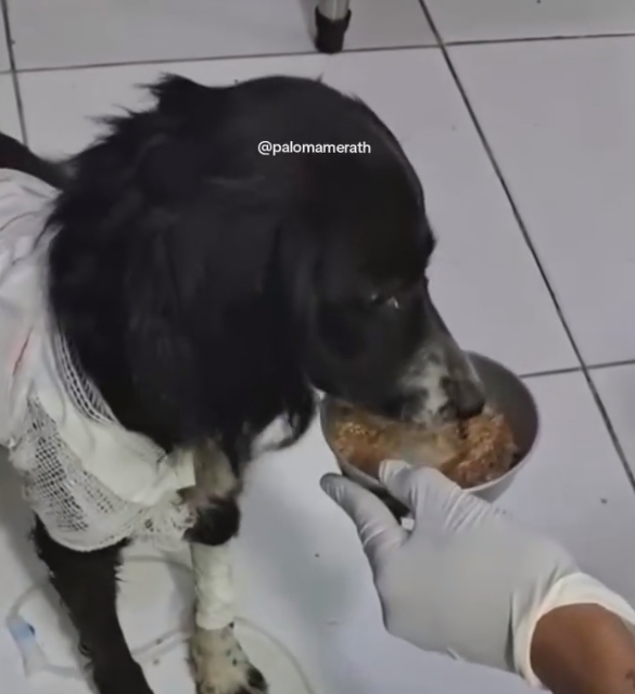 A cachorrinha, batizada de Santinha, foi levada imediatamente ao veterinário e iniciou o tratamento intensivo.