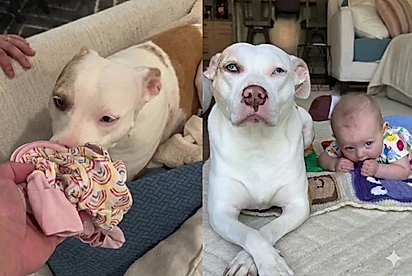 “Ela cheirou a primeira roupinha e algo mudou”: Pitbull surda se torna babá perfeita e enche tutor de orgulho