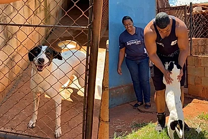 O encontro entre o novo dono e o pet foi registrado e Belinha demonstrou agitação e alegria ao ser solta do canil e ter o primeiro contato com o novo tutor.