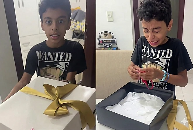 A emoção foi tão intensa que, ao ouvir a mãe pedir para que ele lesse a carta em voz alta, o menino apenas balançou a cabeça e disse que não conseguia.