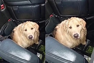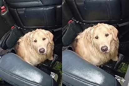 "O olhar dele partiu o coração": Cão Golden e gatinho são encontrados assustados após capotamento, e história comove