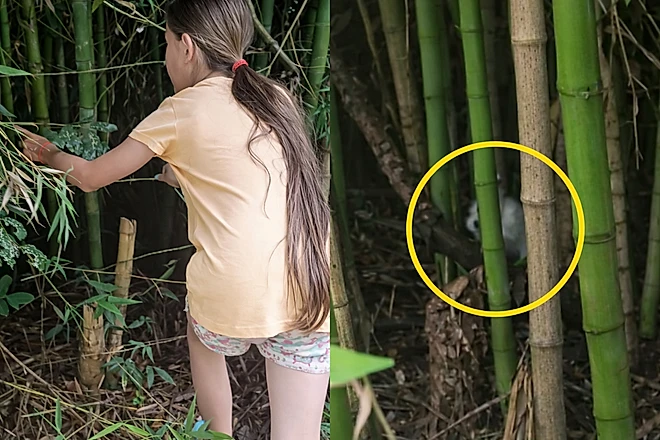 Com cuidado e coragem, a menina passou por entre a cerca de arame, avançando até o ponto onde havia visto o pequeno.